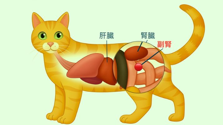 (副腎はホルモンを作る臓器で、腎臓の下の方にあります)
